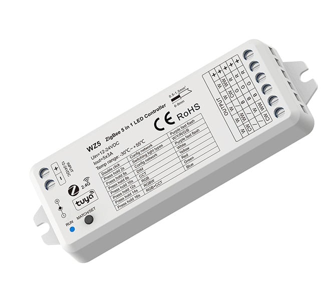 De WZ5 is instelbaar voor ieder type ledstrip: singel- , dual color, D2W en RGB-W (+W).